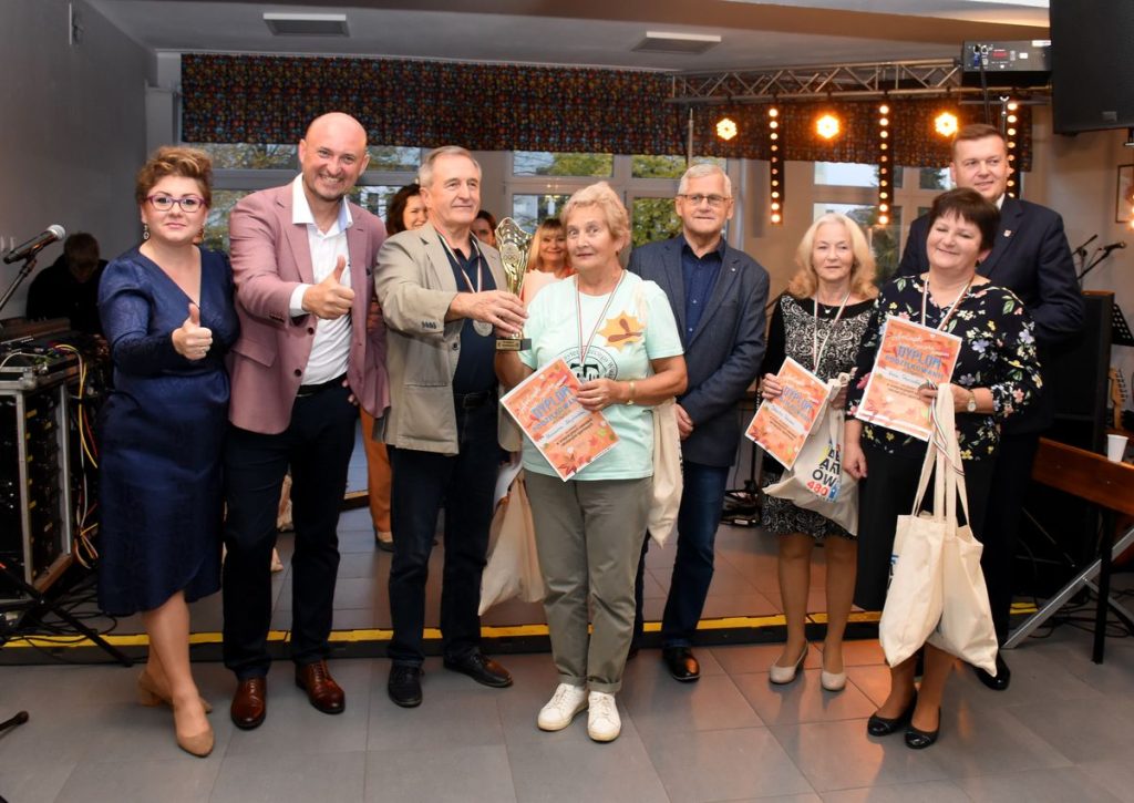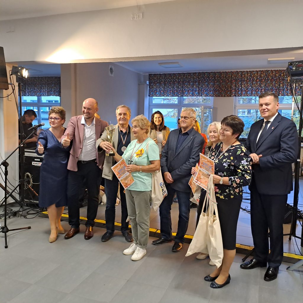 Następnie wszyscy udali się do szkolnej stołówki, gdzie na seniorów czekały pyszne ciasta, owoce i słodycze oraz kawa i herbata przygotowane przez pracowników MOPS. Tutaj też wręczono uczestnikom rozgrywek sportowych puchary, medale i drobne upominki. Kolejnym punktem programu było uhonorowanie przez burmistrza wyróżniających się seniorów poprzez wręczenie statuetki „Aktywny senior”. Bardzo nas cieszy, że otrzymała ją również nasza koleżanka Zosia Zdunek. GRATULACJE, ZOSIU.