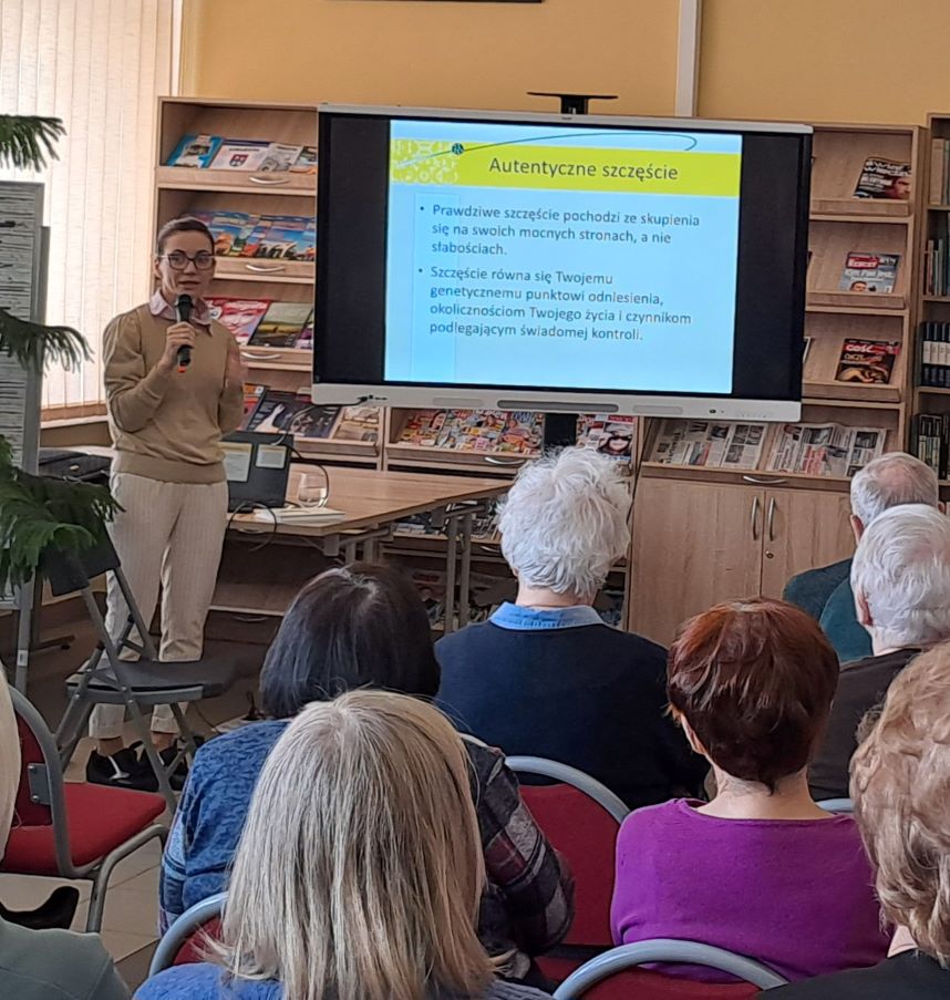 7 kwietnia 2025 r. słuchacze lubartowskiego Uniwersytetu Trzeciego Wieku mieli przyjemność wysłuchać wykładu Pani Joanny Pilarczyk, dyrektor Poradni Psychologiczno-Pedagogicznej w Lubartowie na temat: „Jak osiągnąć dobrostan?”. W dużej czytelni Miejskiej Biblioteki Publicznej naszego gościa oraz zebranych powitał prezes UTW Ryszard Trybalski.