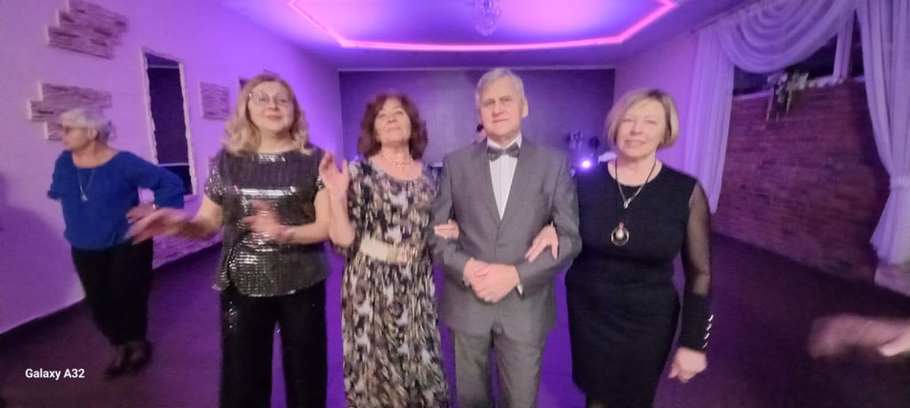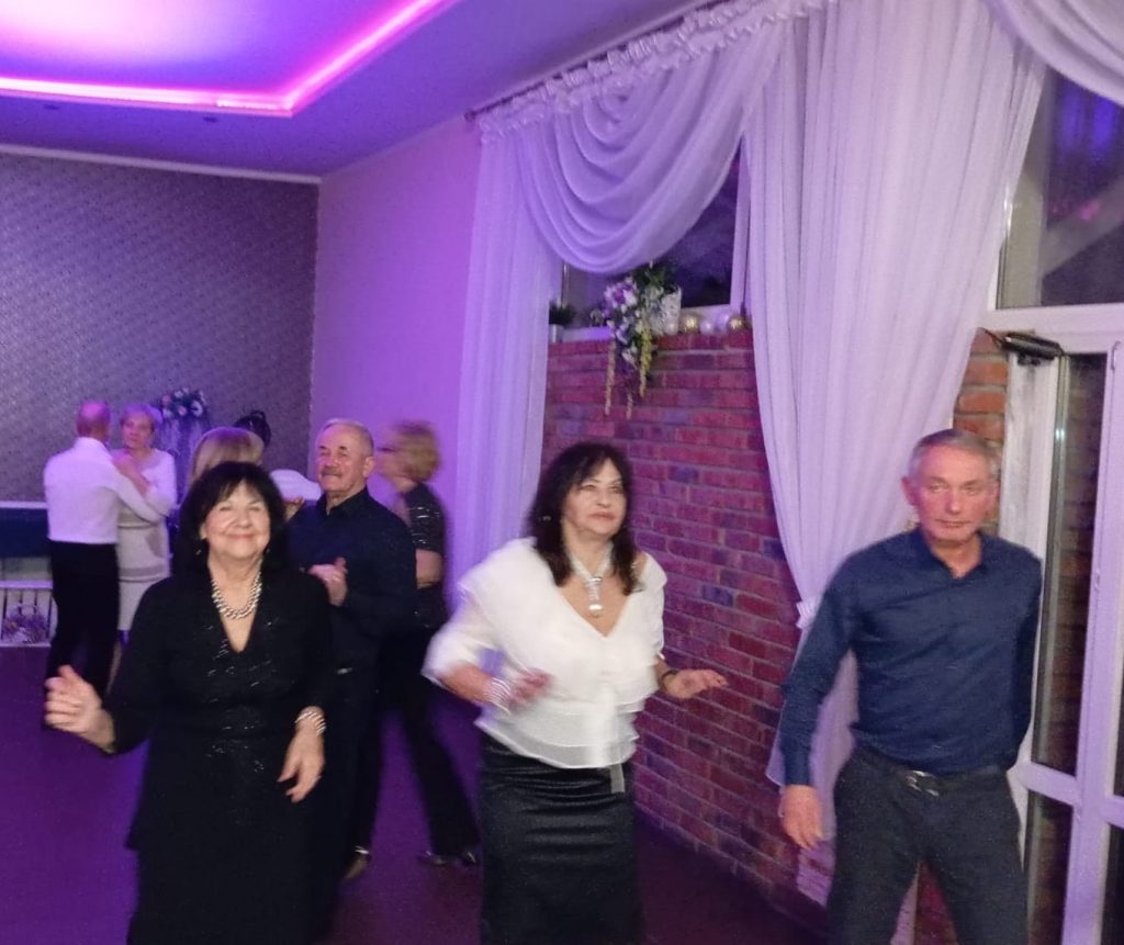 Muzykę do tańca zapewnił nasz kolega Jacek Kołodyński, wszyscy świetnie się bawili zarówno przy bardziej skocznych utworach, jak i spokojniejszych np. walcach. Nie obyło się bez pociągu oraz dawnego przeboju J. Połomskiego „Cała sala śpiewa z nami”